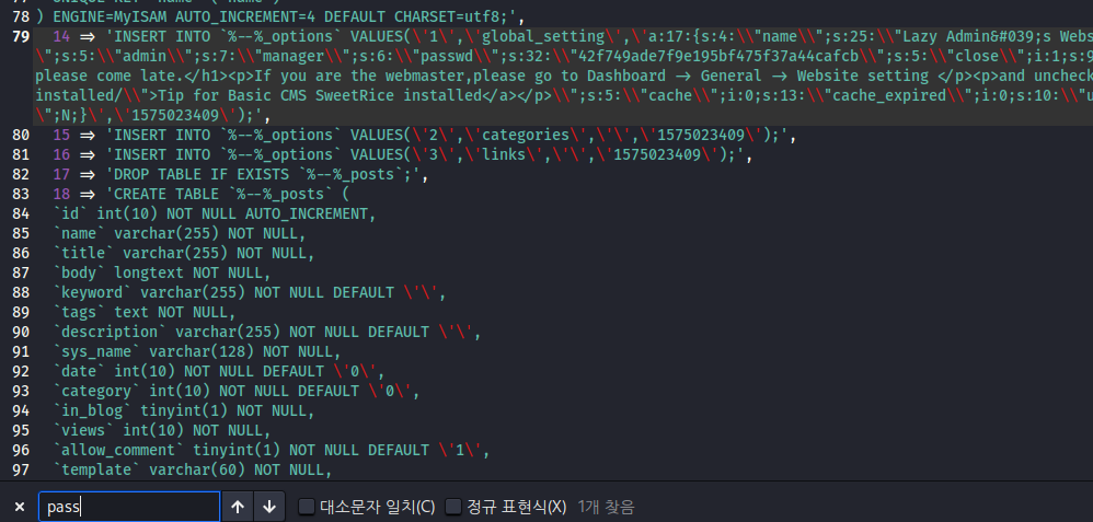 하긴.. 누가 저렇게 패스워드를 적겠어요. 아마 해시된 패스원드 일 겁니다.