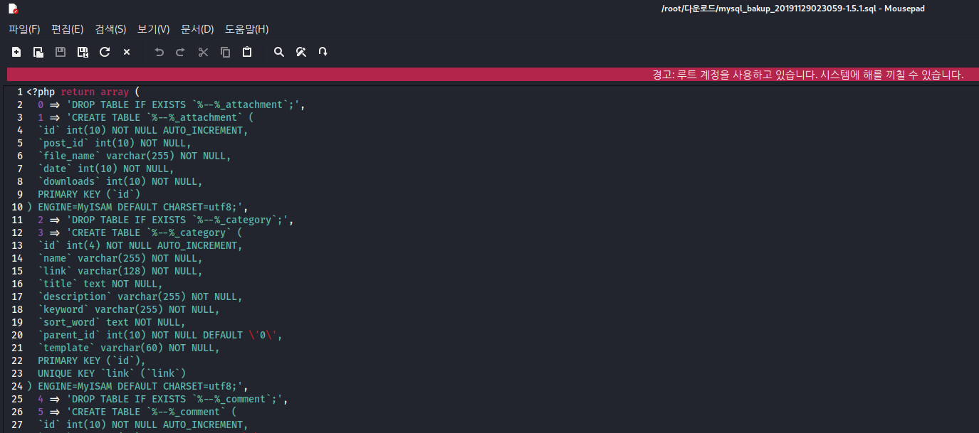 sql 파일을 다운하고 봐보겠습니다.