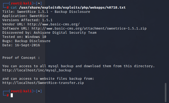 searchsploit sweetrice